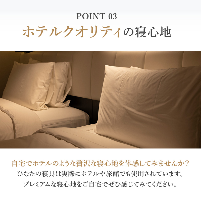 ひなたの寝具は実際にホテルや旅館でも使用されています。