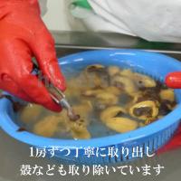 殻から1房ずつ丁寧に取りだし、殻などの取り残しを丁寧に取り除いています。