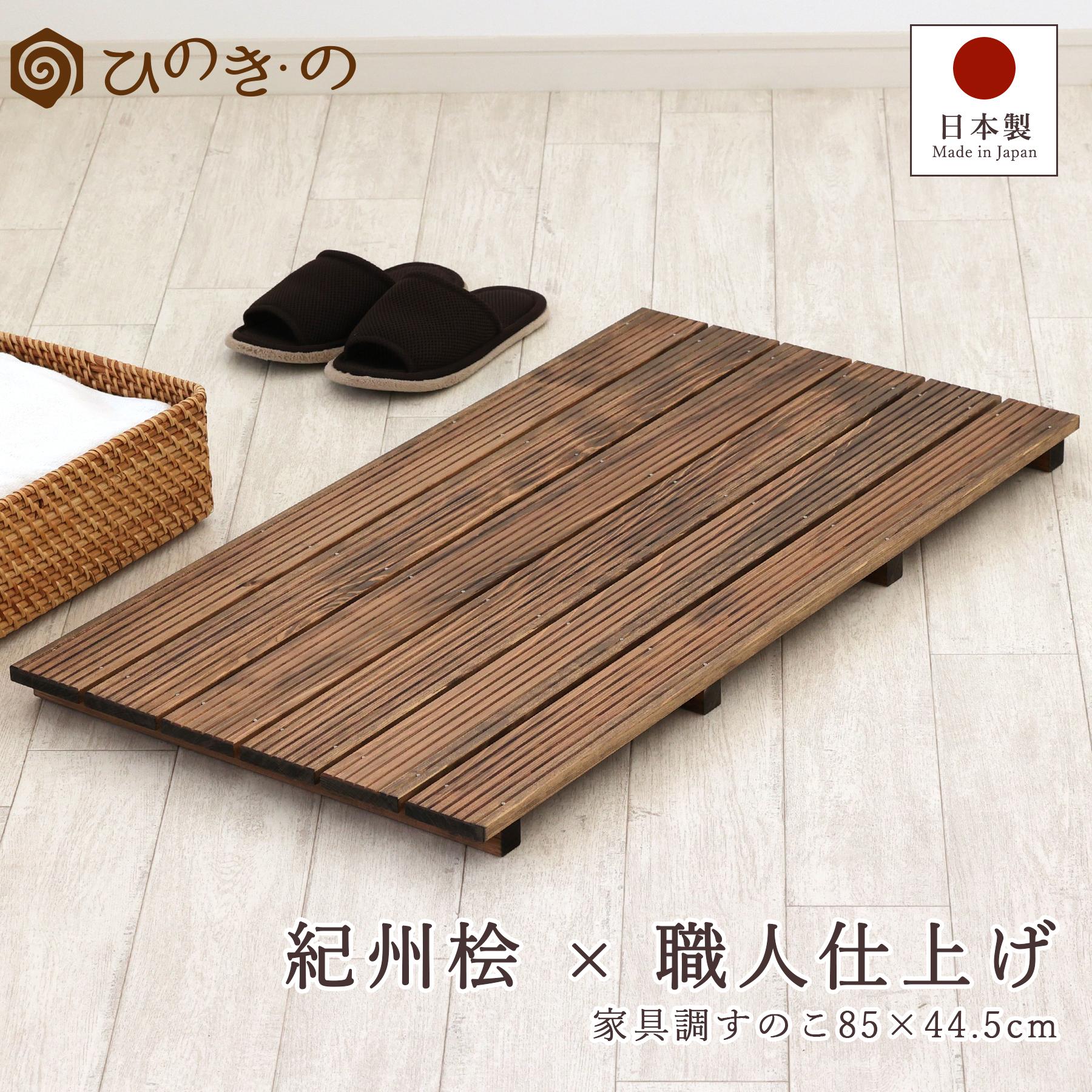 | 素材:三重県 紀州産 桧(ひのき) 家具調仕上げ 構造:滑り止め溝加工付き サイズ 約(cm):幅85 奥行44.5 高さ3.6 |
