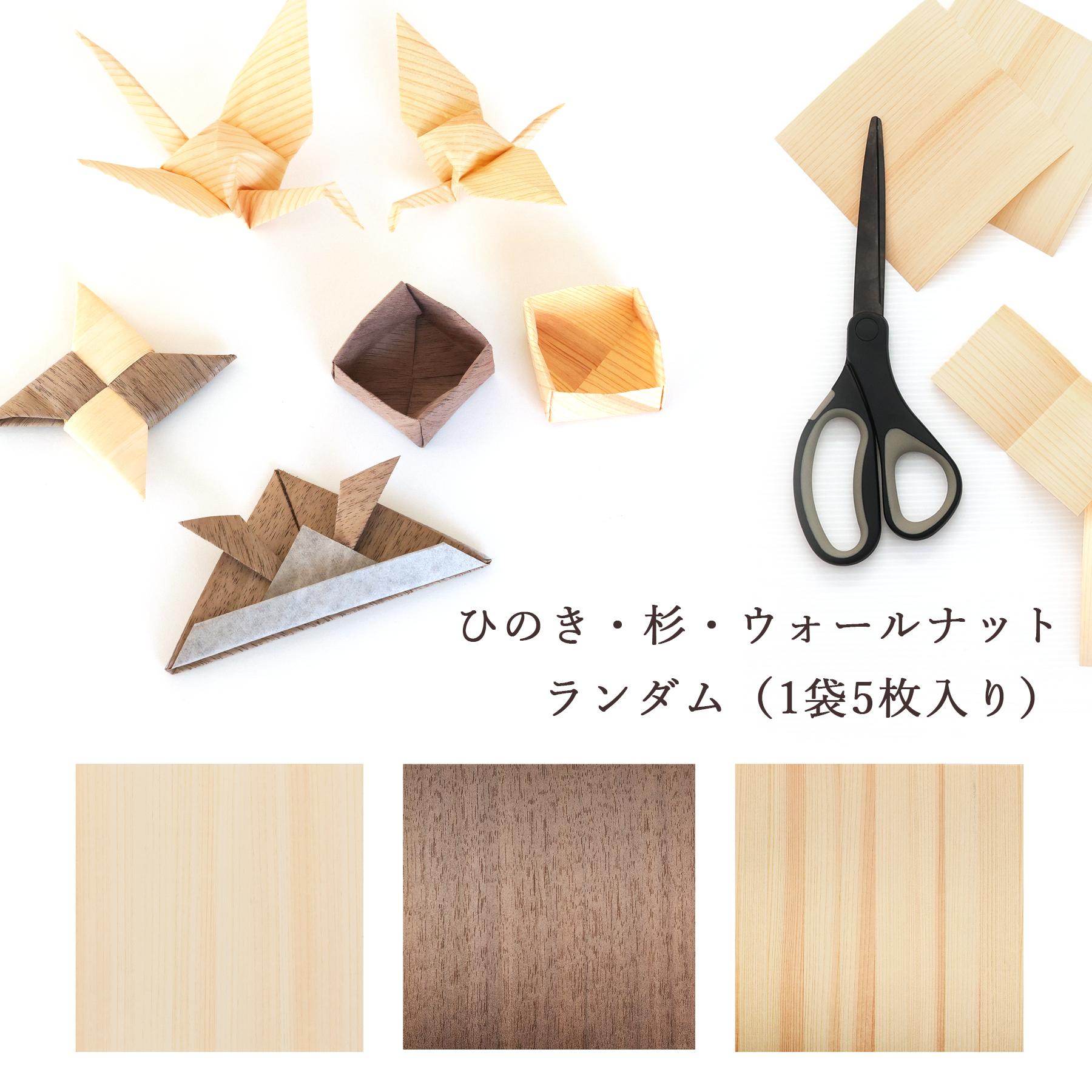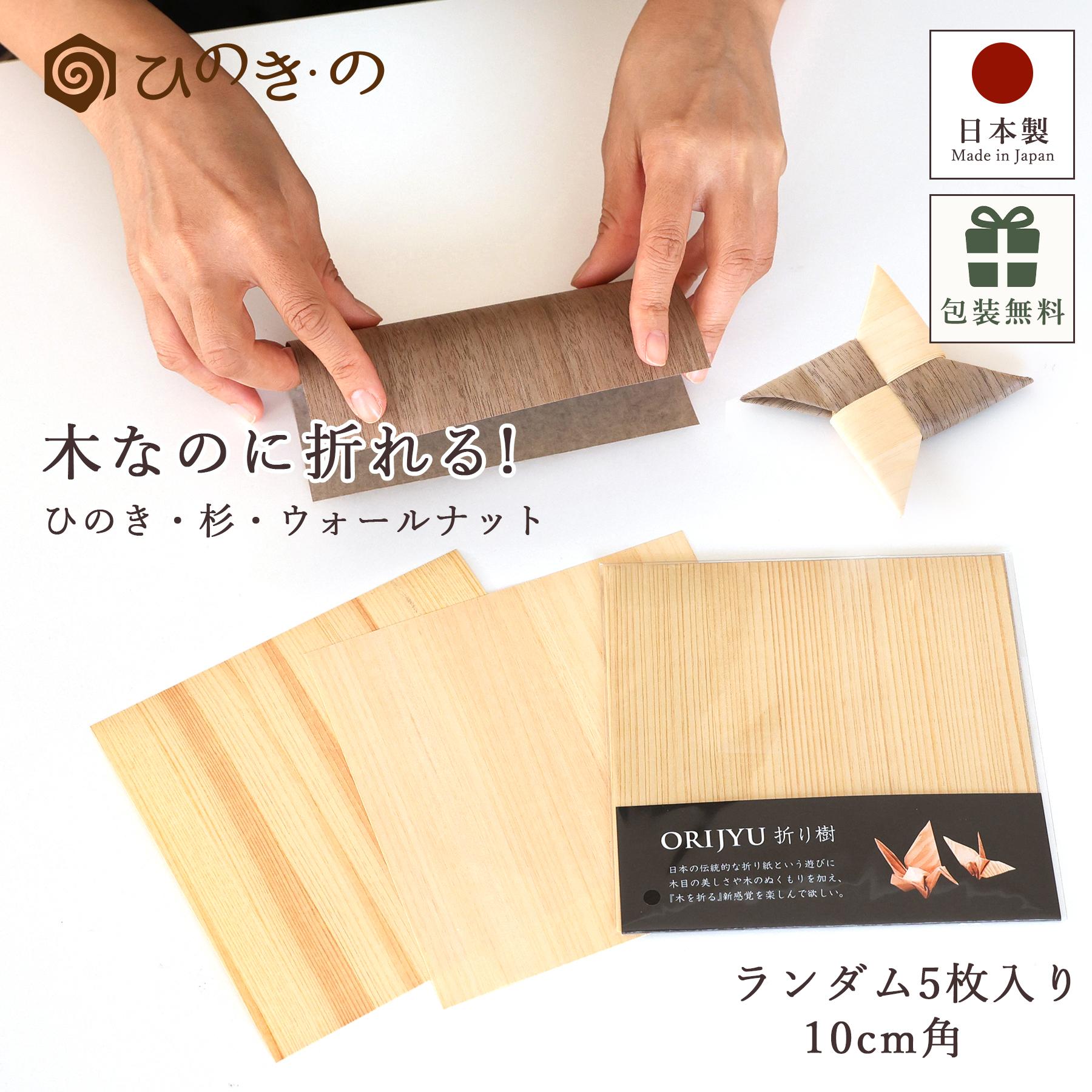 折り紙 天然木 ひのき 杉 ウォールナット ランダム 木の紙 森の紙 10cm角 1セット 5枚 日本製 ORIGAMI 単色 ナチュラル ギフト プレゼント