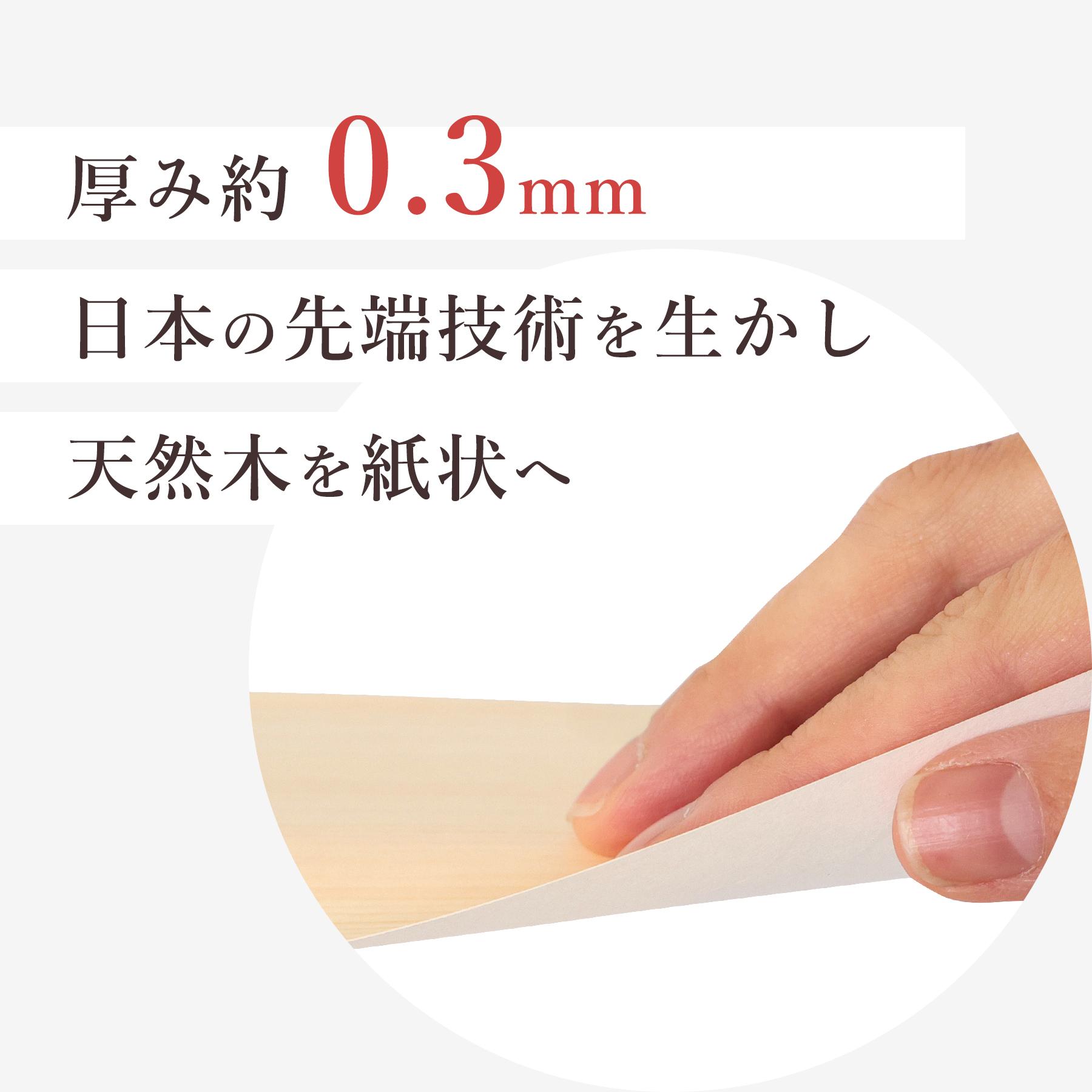 木の温もりと軽さをそのままに、紙のように扱いやすいしなやかさを実現しました。