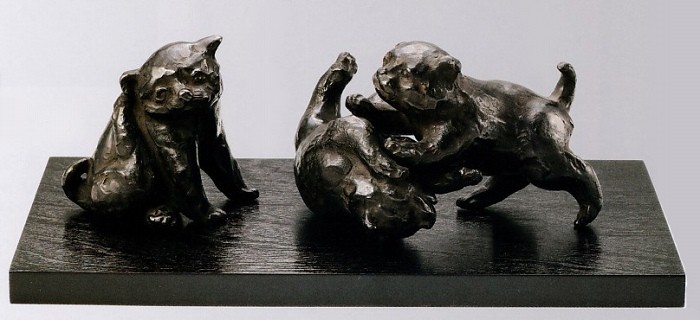犬の置物/たわむれ 名取川雅彦作品 高岡銅器