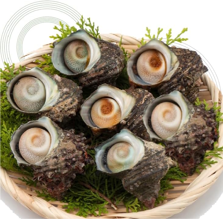 伊勢志摩の海の幸、【天然さざえ】です。 サイズは120g〜150gぐらいの、子供の握りこぶし程度の大きさのさざえが7個入っています。 大き目の【さざえ】は、お刺身やつぼ焼きにぴったりの大きさです。 身が取り出しやすいので、ガーリックバターなどで味付けして、お料理するのもおススメです。