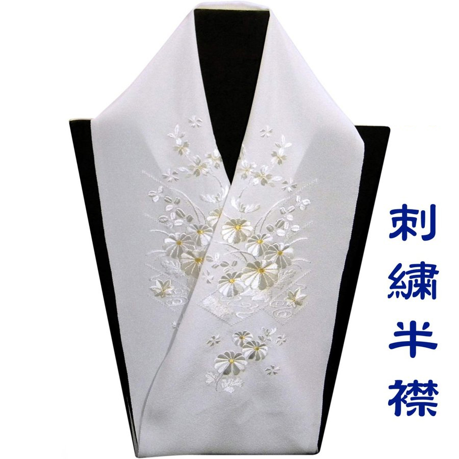 刺繍半襟 花柄ししゅう半衿 白地菊花金 礼装着物用 日本製 絹交織