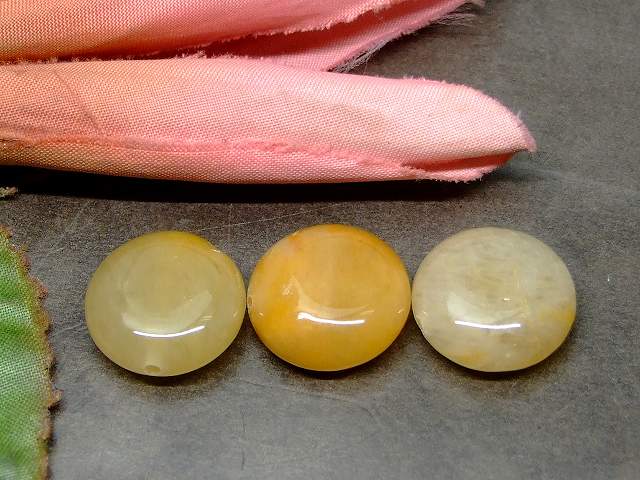 天然石 パワーストーン g3-27C 今月の半額 わけあり 黄翡翠 ヒスイ 15mm 円盤 コイン 1粒売り