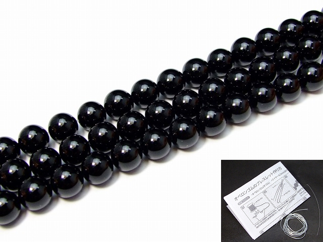 天然石 パワーストーン g3-468C ブラックオニキス 10mm 丸玉 5A 半連19cm 通し針、解説書、1mゴム付き ブラジル産 送料無料有