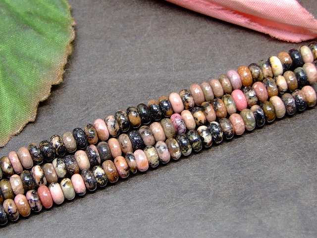 天然石 パワーストーン g3-603C 今月の半額 わけあり ロードナイト 薔薇輝石 4mm×2mm ソロバン 算盤 そろばん 1粒売り 送料無料有