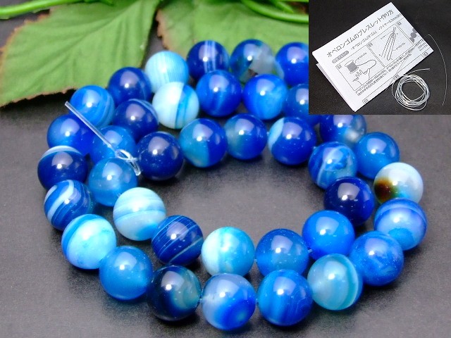 g3-983C 10mm ブルー縞 瑪瑙 メノウ 青 ストライプ アゲート 1連38cm 通し針、解説書、1mゴム付き 送料無料有 ブラジル産 天然石