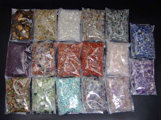 天然石 パワー ストーン 浄化用さざれ石17種類(各100g) 1700g 水晶・ローズクォーツ・タイチンルチルクォーツ等 ミックス石