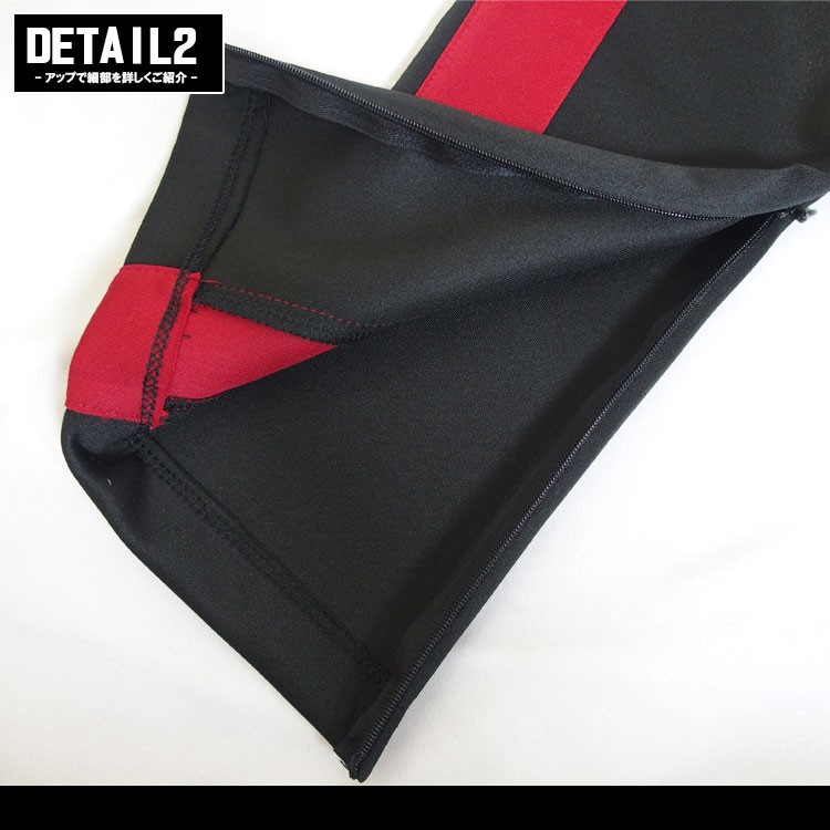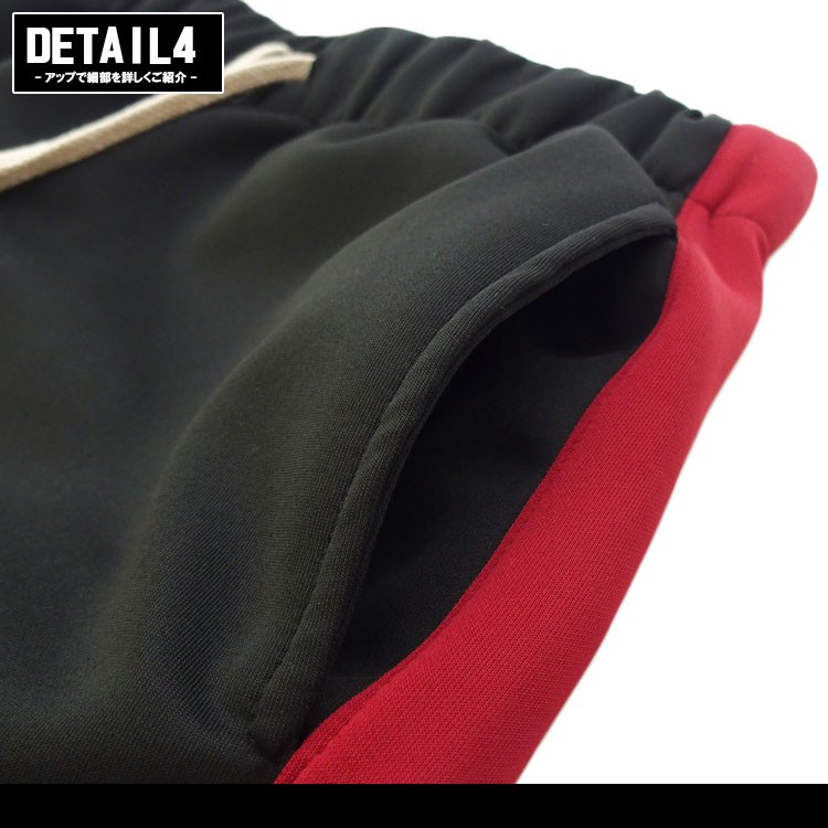 履き心地の良いジャージ素材を使用しているのでラフに着こなせます。スリムなシルエットが特徴的で、ソフトな肌触りと軽い質感、サイドにラインを入れトレンド感溢れる仕上がり。裾にはジップファスナーが付き、ウエスト部分の長めのドローコードがアクセントの効いたデザイン。