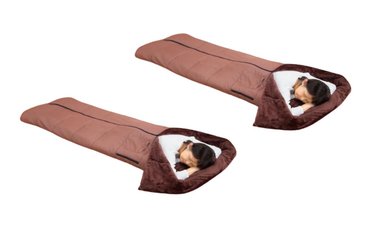 ファミラ TVショッピング5WAYトリプルウォーム寝袋 2個セット ブラウン 約150×210cm、寝袋 収納袋付き 寝袋 掛け布団 防災グッズ