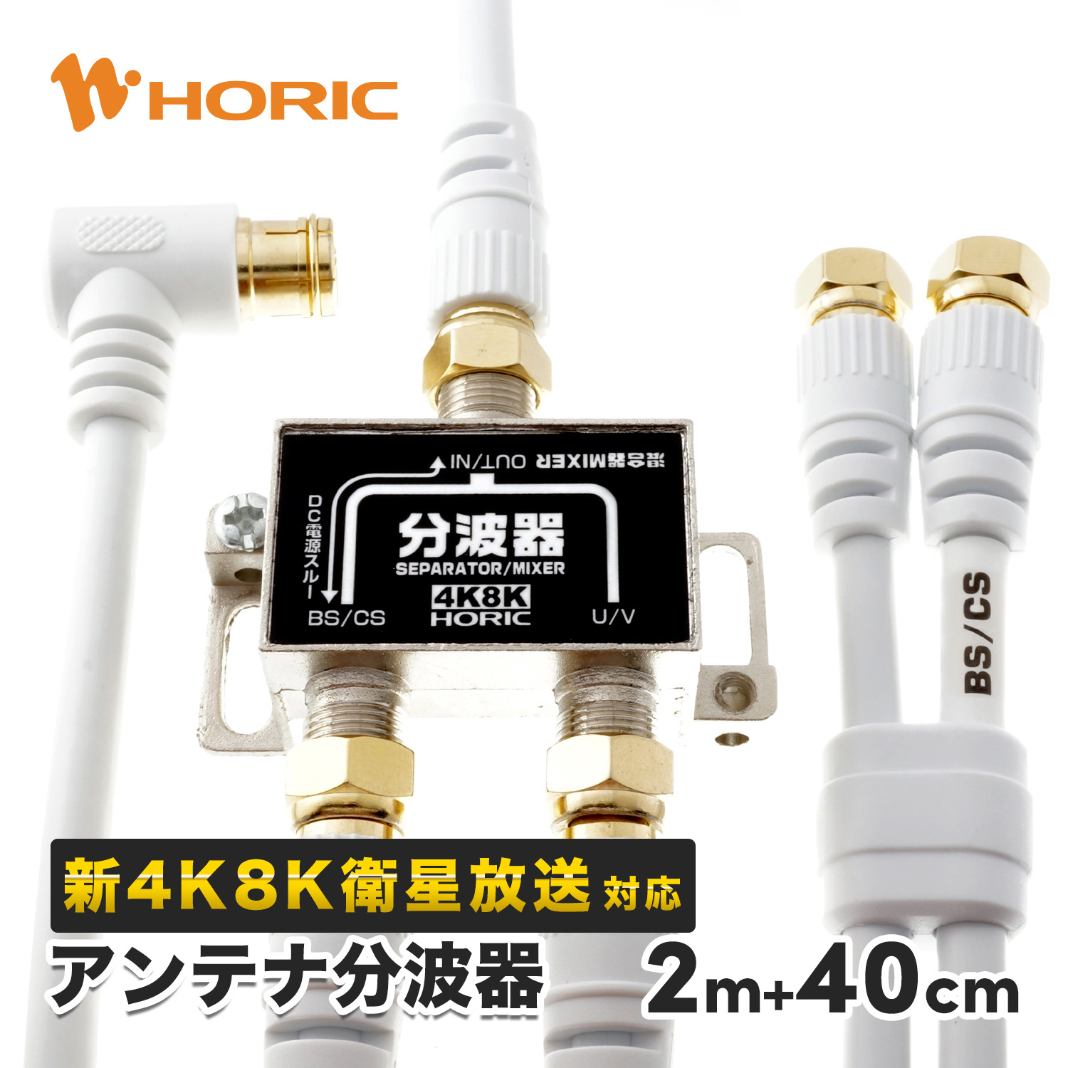 アンテナ分波器 ケーブル3本付属 2m/40cm 4K8K 地デジ BS CS TV テレビ ホワイト ネジ式コネクタ HAT-SP322WH HORIC