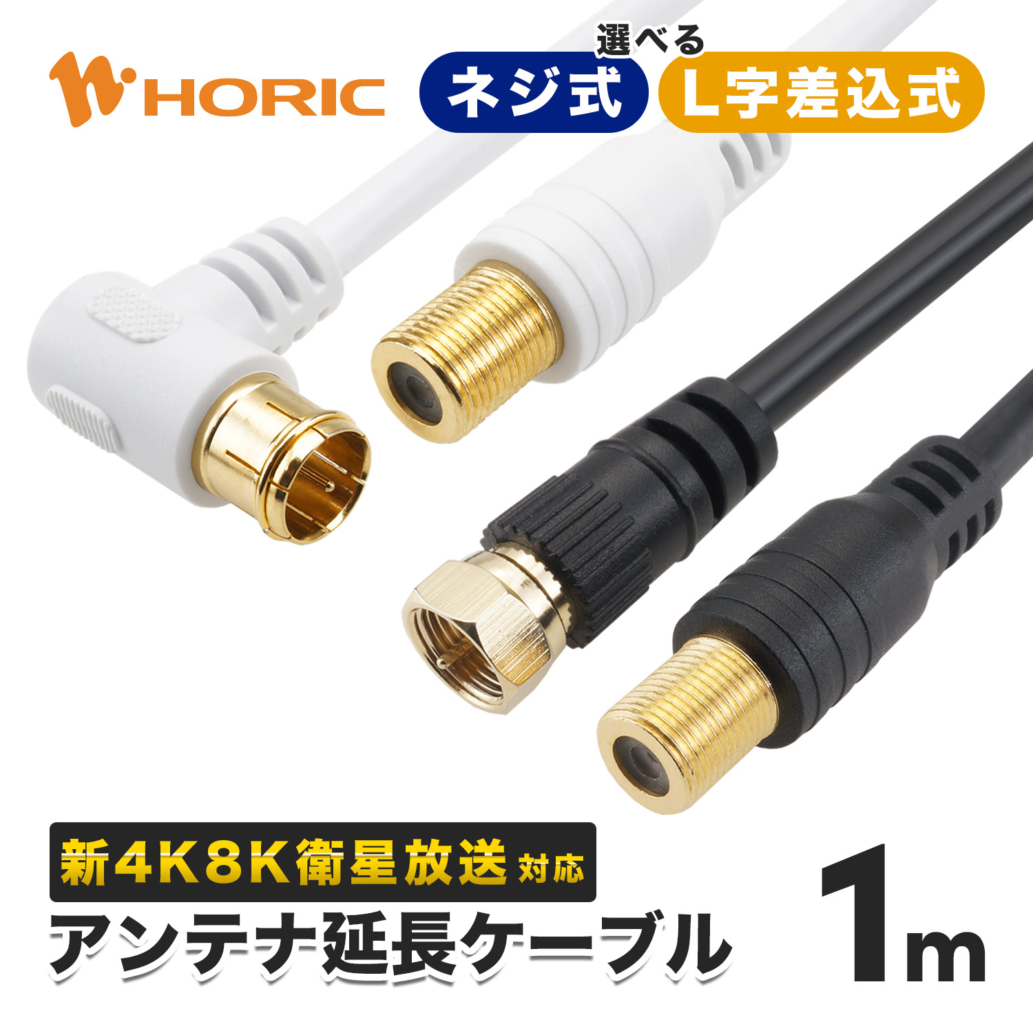 アンテナ延長ケーブル 1m 同軸ケーブル 4K対応 8K対応 ネジ式 -L字差込式 テレビ S-4C-FB BS CS 地デジ ホワイト ブラック HORIC 669WH 670BK 671WH 672BK