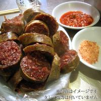 豚の腸に、春雨、餅米、刻んだ香味野菜などを入れたに、調味塩(塩と胡椒)やを添え、軽食として食すのが一般的な韓国のたべものです。