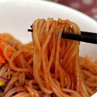 「宋家チョル麺」は、韓国仁川(インチョン)の代表料理を再現した辛口シコシコ麺です。チョル麺の最大の特徴が、辛さとシコシコ麺です。上質の小麦粉やじゃが芋でん粉を使用した麺は、言葉通りコシが強く、歯応えがしっかりしています。トッピングにはたくさんの野菜を盛りつけ、辛さを調整しながら食べるのもチョル麺の魅力です。