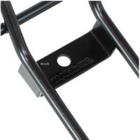 又、荷物の脱落を防止する為、下部に荷物止めとなる折り返し、ゴムネットやゴムバンド等を引っ掛ける左右の突起、荷物フックとして使用出来る中央上部の小型フレームを採用するなど、実用性を重視した設計になっています。