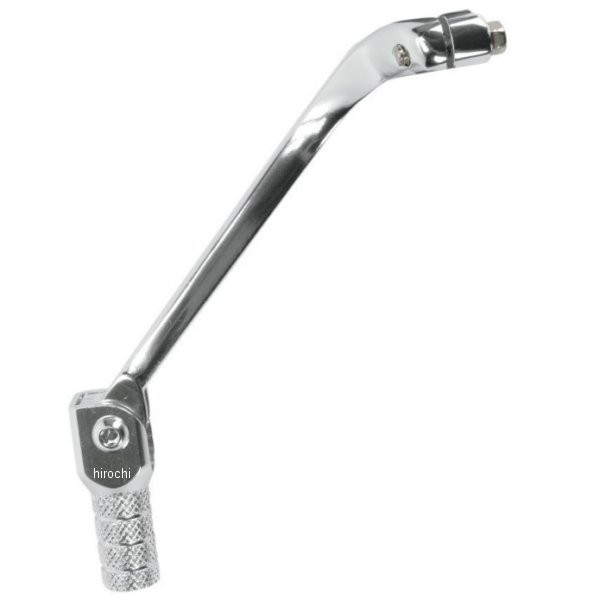 アルミ。先端にローレット加工が付いた折りたたみ式のシフトチップ。ボルトで取り付けられた先端とレバー。