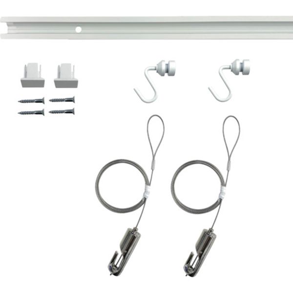 ・必要なパーツがすべてセットになった商品です。・額吊レールを使用することにより壁面を傷つけることなく、手軽に左右自由な位置に絵、写真、鏡を吊り下げることができます。・自在を使用することにより上下にも自由に位置を替えられます。