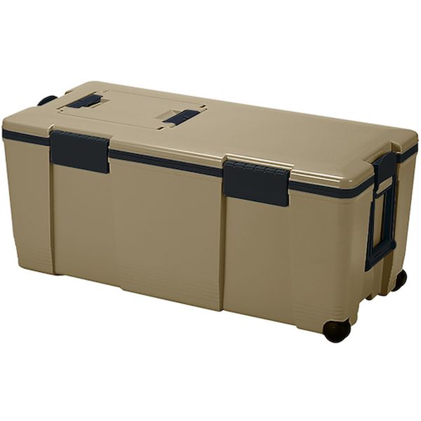 ・密閉度を配慮したバックル設計の為、クーラー内の冷気をガードします。・付属で肩掛けベルト付です。・蓋に両開き小窓付きで出し入れ可能・水抜き栓付き・キャスター付き・トレーにもなるメッシュ仕切り板付き