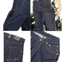 バイク乗りの定番スタイル、デニムパンツに、ニーシンガード・ウエストパッドを標準装備。