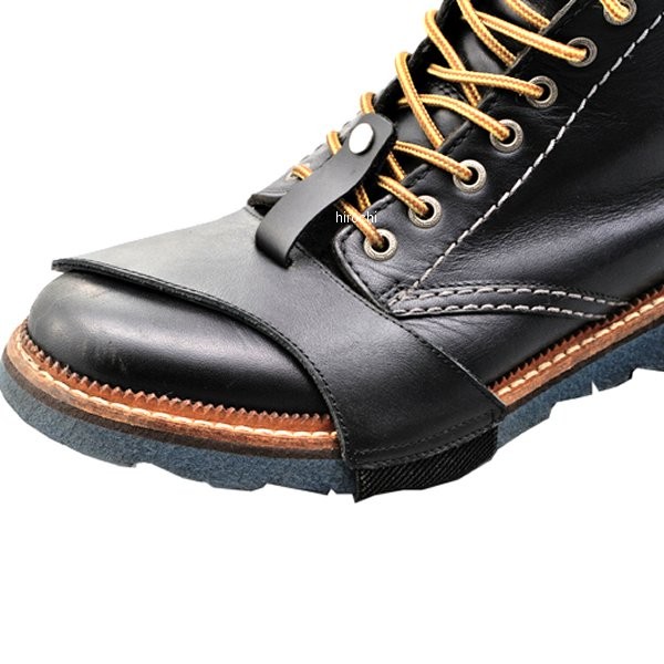 歩行時にかかる力と靴の屈曲への対策のため、靴のくびれ部でホールド+テストを重ねた革の形状により、つけたまま歩いても外れにくいシフトパット。