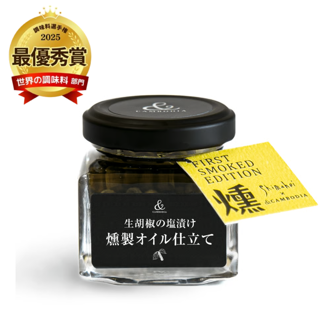 調味料選手権2025 最優秀賞受賞 J-WAVE紹介商品 生胡椒の塩漬け 燻製オイル仕立て 43g 燻製シマヘイ監修 おつまみ 万能調味料 &CAMBODIA アンドカンボジア