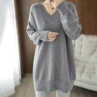 ニット レディース ニット ニットセーター セーター 大人可愛い 長袖 Vネックセーター Vネックニット ニットチュニック 秋冬 ロングニット プルオ