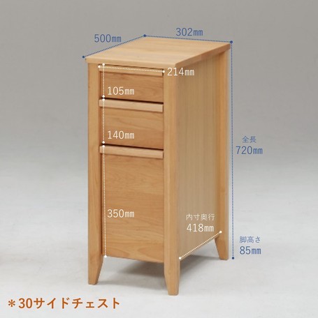 30サイドチェスト 幅30.2cm 収納 天然木 ナチュラル 学習デスク 子供部屋 トライ-A/kiduku