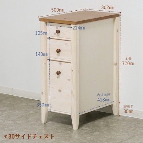 30サイドチェスト 幅30.2cm 収納 天然木 カントリー調 学習デスク 子供部屋 トライ-P/kiduku