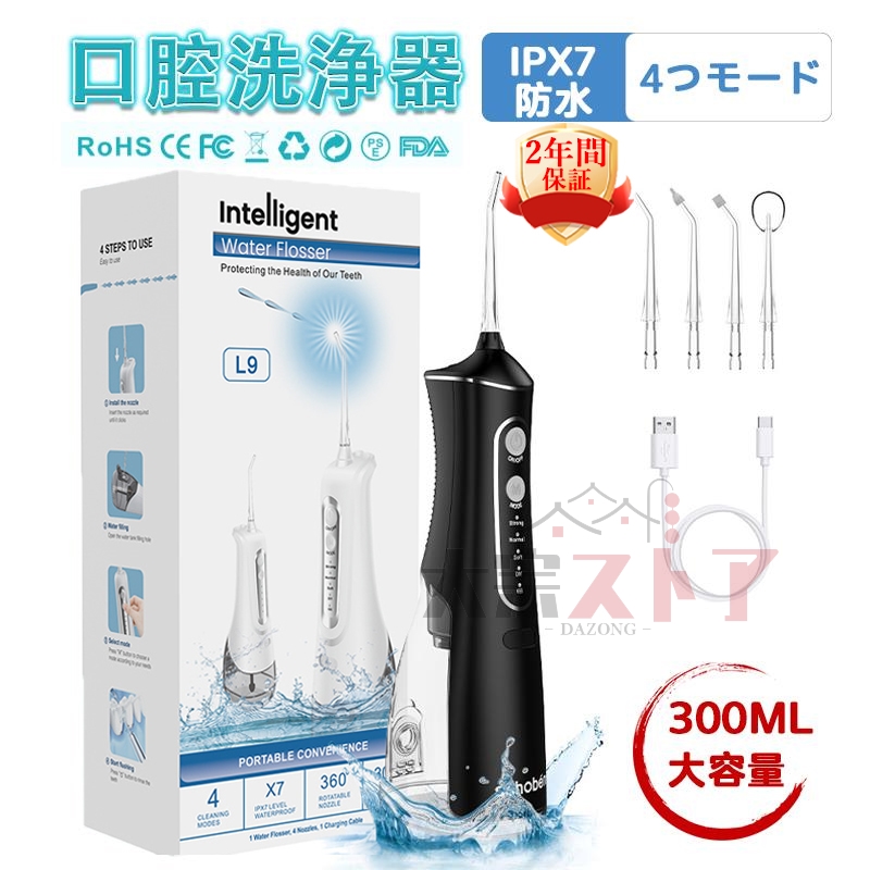 口腔洗浄機 口腔洗浄器 ジェットウォッシャー 300ml大容量 50日作動時間 4つモード 防水 携帯型 歯間ジェット 歯周ポケット 歯垢除去 旅行2024