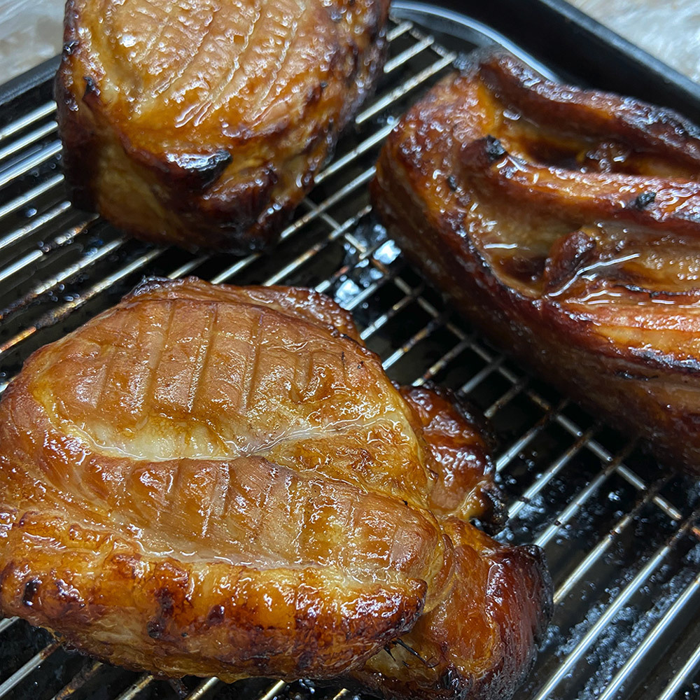 丁寧に焼き上げた特製の焼豚をスライスにしてお届けいたします。
