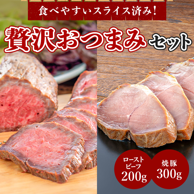 \5のつく日5%OFF/贅沢おつまみセット(焼豚 300g+ローストビーフ 200g)【国産 肉 惣菜 冷凍 ギフト プレゼント】