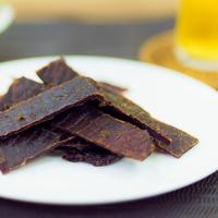 ステーキ用牛もも肉をそのまま3分の1になるまで乾燥させた本物のストレートタイプのビーフジャーキーです。