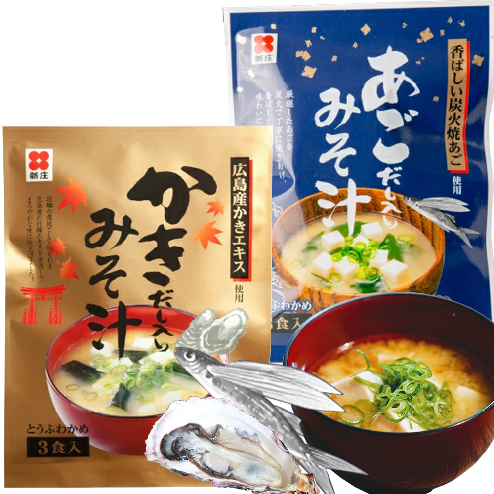 即席 かきだし入り、あごだし入り みそ汁 1袋3食用 各1袋 送料込み みそ 味噌 かき あご インスタント 広島 お土産 銀座tau
