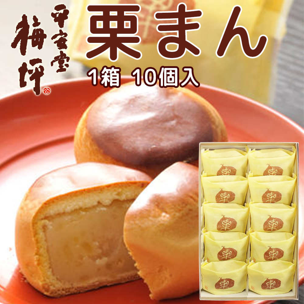 広島銘菓 栗まん 10個入り 手提げ袋付き 栗をふんだんにつかっています 送料込み くり スイーツ まんじゅう 手土産 平安堂梅坪