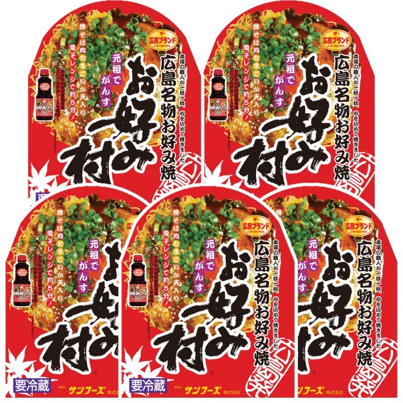 冷蔵 お好み焼 レギュラー 5箱 広島名物 お好み村 1箱 お好み焼き 400g×1、お好みソース、お好みスパイス、青粉付き 送料無料 広島焼き サンフーズ(株)