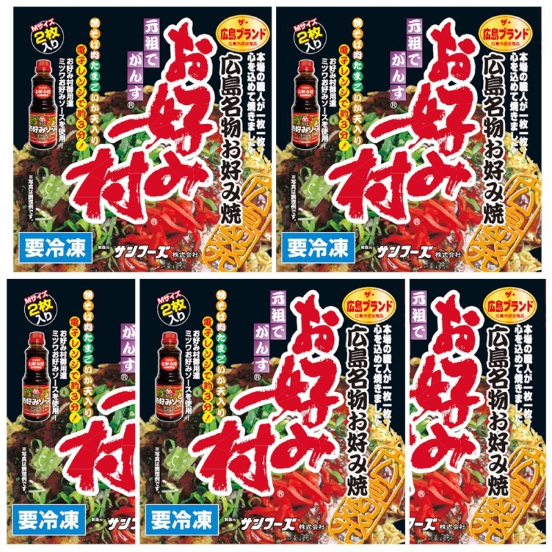 冷凍 お好み焼 小ぶり 1箱2枚入り 5箱セット 広島名物 お好み村 1箱 お好み焼き 250g×2 お好みソース お好みスパイス 青粉 送料無料 広島焼き サンフーズ