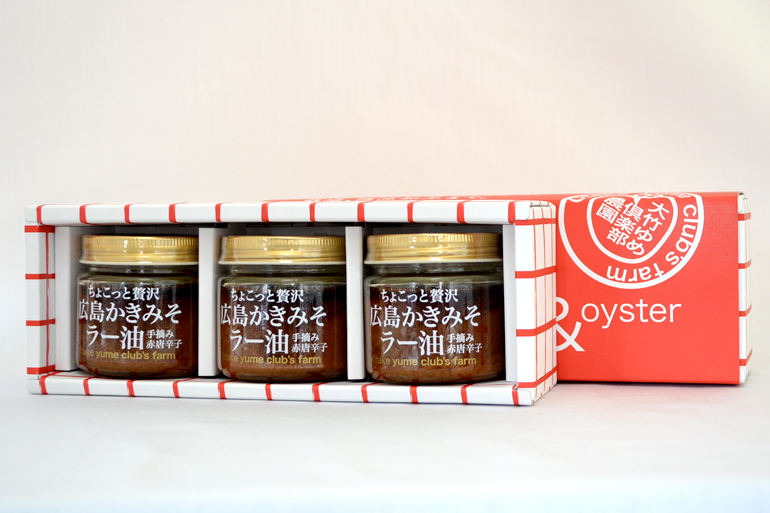 広島かき みそ ラー油 120g 3本セット 箱入り 手摘み赤唐辛子 送料込み お土産 大竹特産ゆめ倶楽部