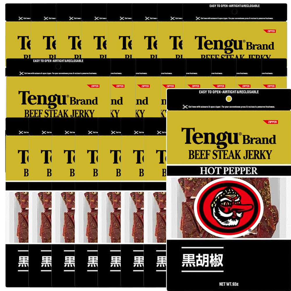 テングブランドのビーフジャーキーは厳選された牛肉を使用し、しょうゆをベースに胡椒を加えたピリッと辛い味付けになっています。