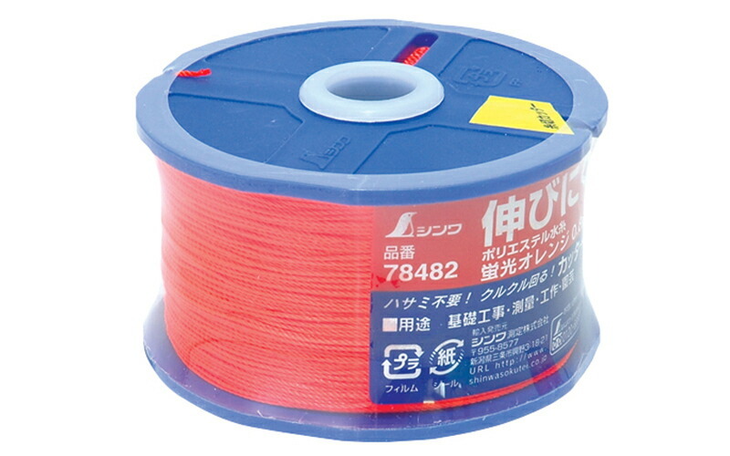 ポリエステル水糸 リール巻 太 0.8mm 270m 蛍光オレンジ 78482 広島工具 シンワ測定
