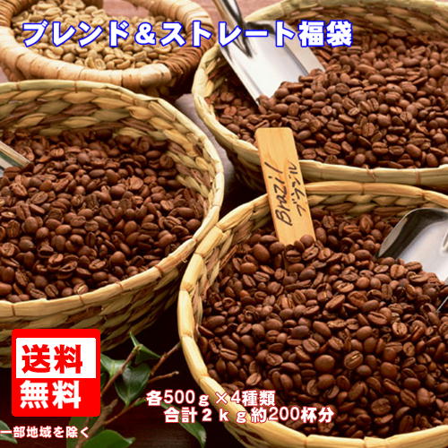 珈琲 コーヒー 福袋 送料無料 コーヒー豆 珈琲専門店のブレンド&ストレート大盛2kg(約200杯分)福袋