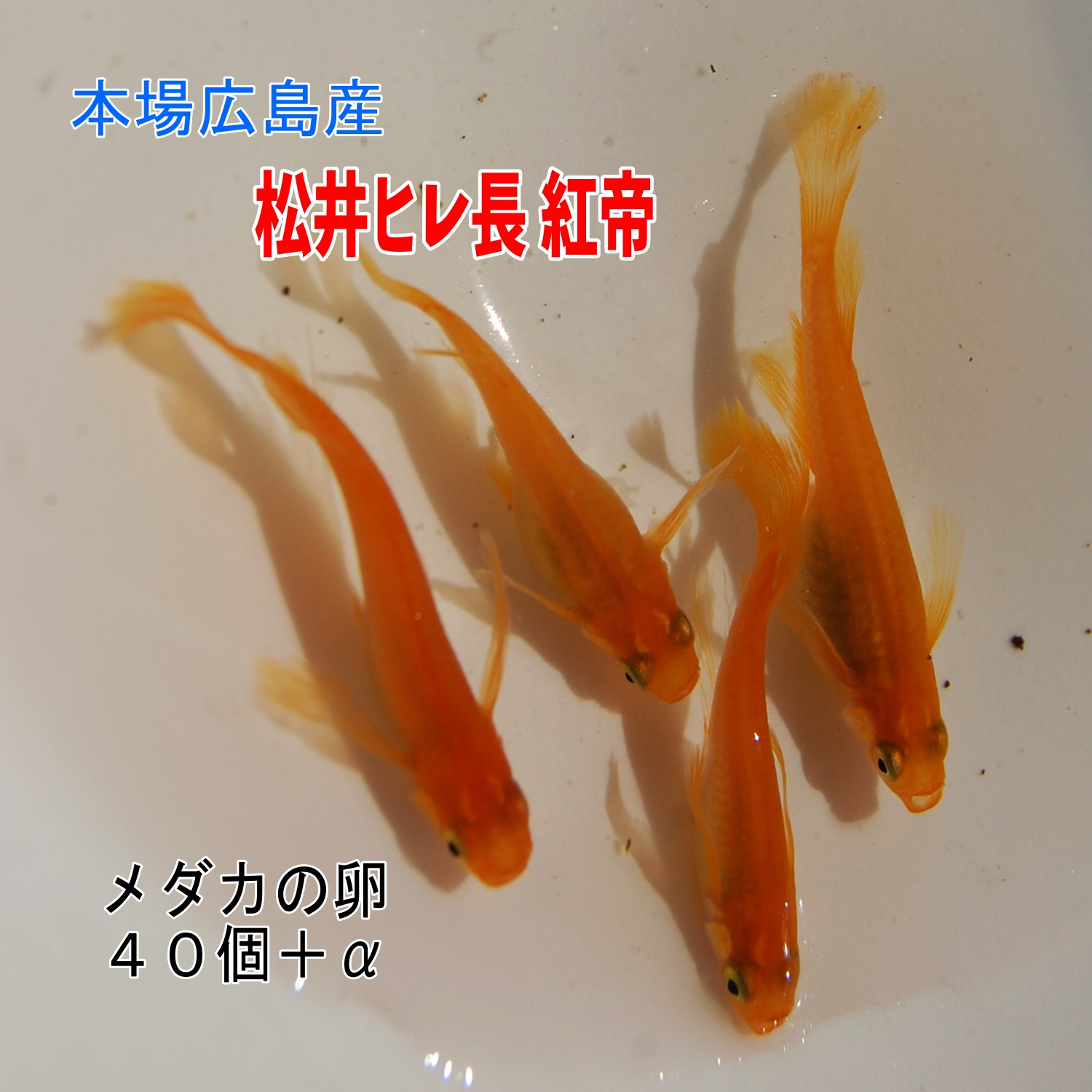 めだか 松井ヒレ長 紅帝 卵40個 広島産メダカ 改良 3色 赤 最高級メダカ