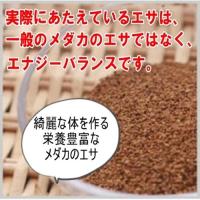 当店のメダカには、一般のメダカのエサを与えていません。与えているエサは食の三要素といわれる 「栄養」 「ミネラル」 「酵素」 を含んだエナジーバランス(化学合成量を含んでいない)を贅沢に与えています。おまけとして、稚魚用のエサ(エナジーバランス)を同封いたします。