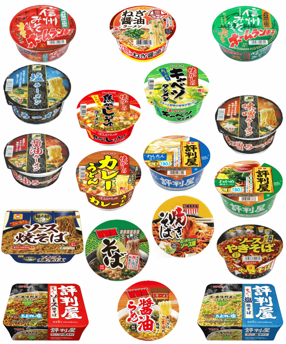 ●画像の中から15種を当店でセレクトしてお届けします。焼きそば4種+カップ麺11種で、飽きずに楽しめます。