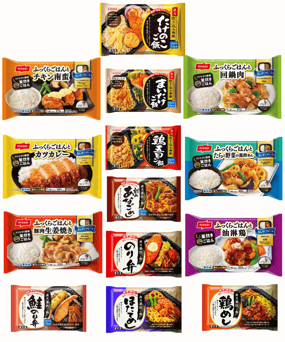 【白ごはんが美味しいという共通点で、ニッスイといなば食品の冷凍弁当を組み合わせました】