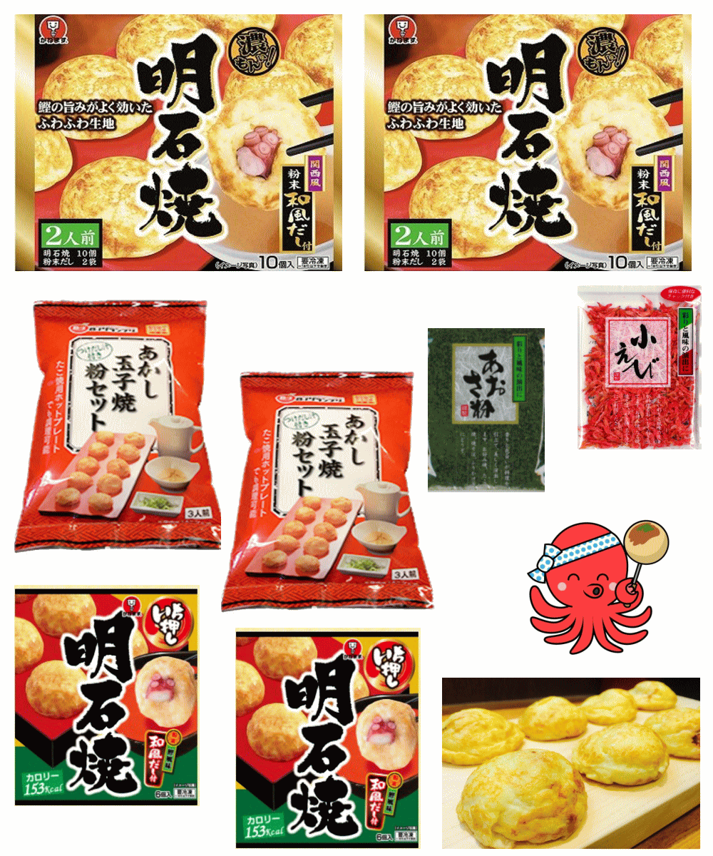 【冷凍】【冷凍VSドライ食品】ご当地グルメ 明石焼き 完成版 かねます食品VS夢工房 3種各2袋 60玉〜70玉相当 レンチンと手作りタイプ夢の競演 関東圏送料無料