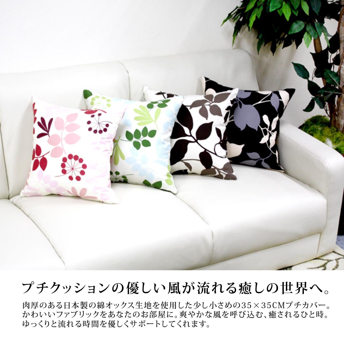 日本製 プリント クッションカバー II 北欧柄 35×35 オックス生地 クッショ用 カバーのみ ファスナー式 おしゃれ かわいい 花柄 リーフ ドット 綿100%