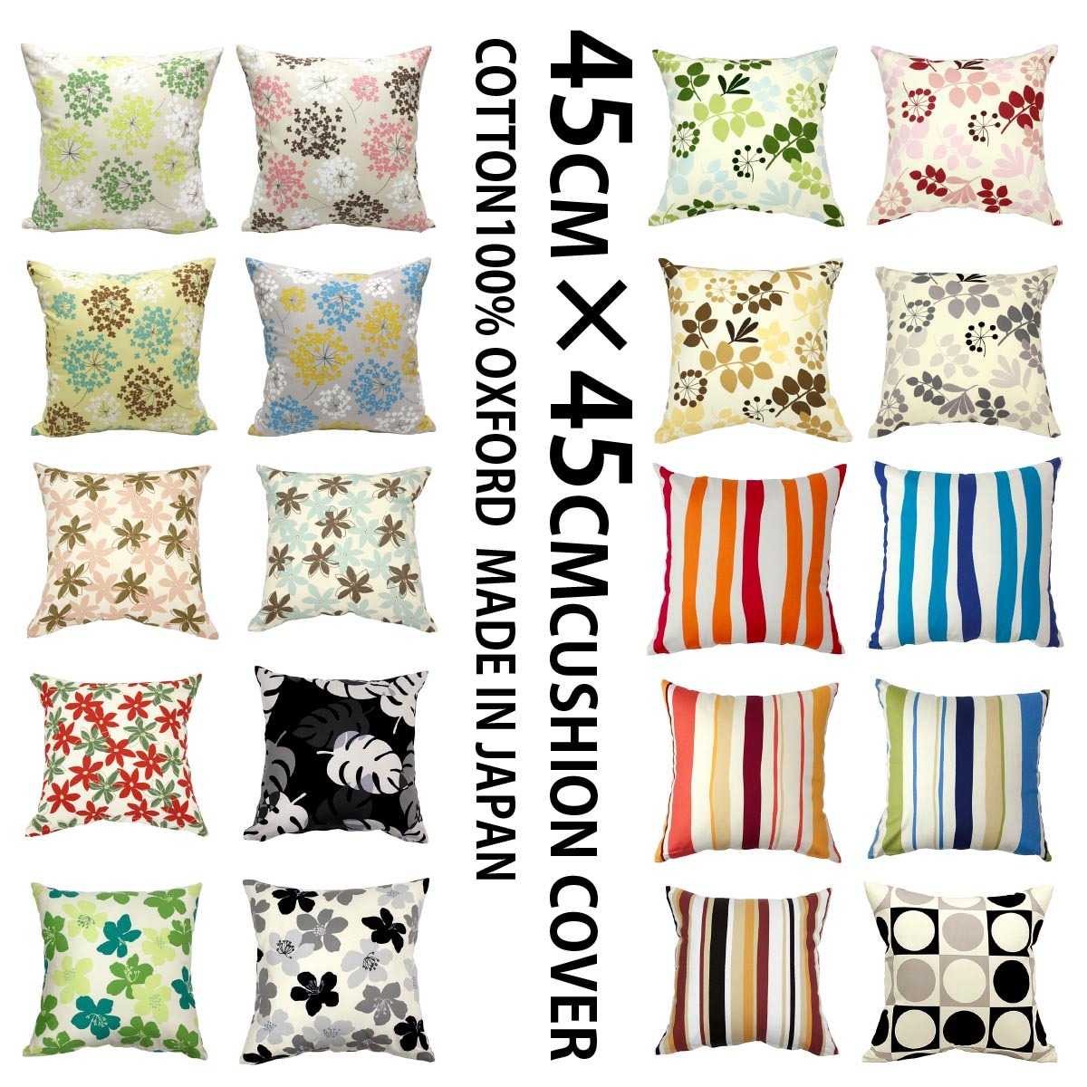 日本製 プリント クッションカバー 北欧柄 45×45 オックス生地 クッショ用 カバーのみ ファスナー式 おしゃれ かわいい 花柄 リーフ ドット メール便 綿100%