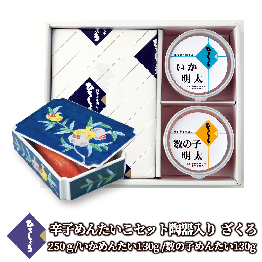 明太子 国産 博多辛子めんたいこ セット ひろしょう 陶器入り 有田焼 柘榴 250g いか 数の子 130g プレゼント 食品 高級 ギフト 海鮮 ごちそう 正月