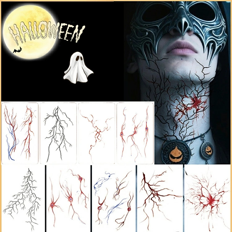 ハロウィン タトゥーシール セット シールタトゥー フェイスタトゥー 顔シール 本物みたい 仮想タトゥー 視覚 コスプレ 怖い 血管 蝶 ダーク 仮装 個性 おしゃれ